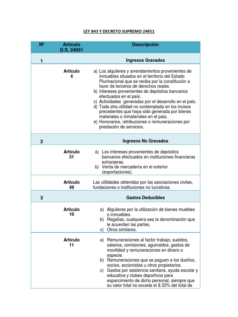 Decreto Supremo 24051 - Ley 843 Y Decreto Supremo 24051 Docx Pdf Free Download