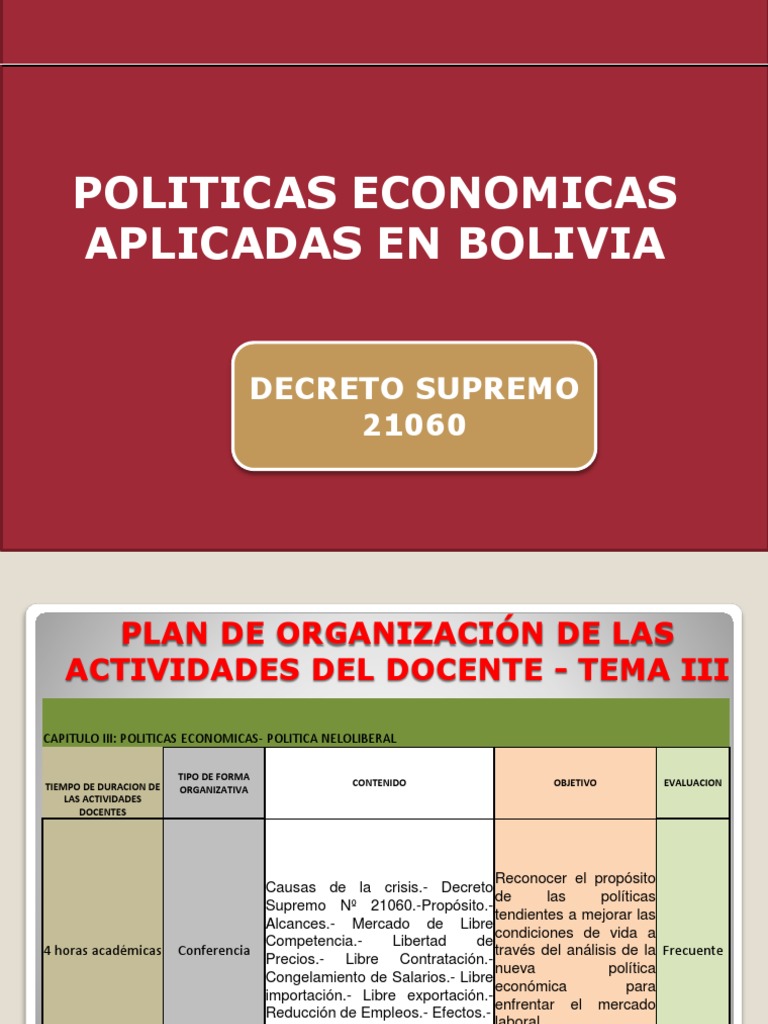 Desarrollo Del Decreto Supremo 21060 - El 21060 No Se Extinguira En Un 100 Segun Senador Masista Analistas Ven Dificil Su Abrogacion Eju Tv