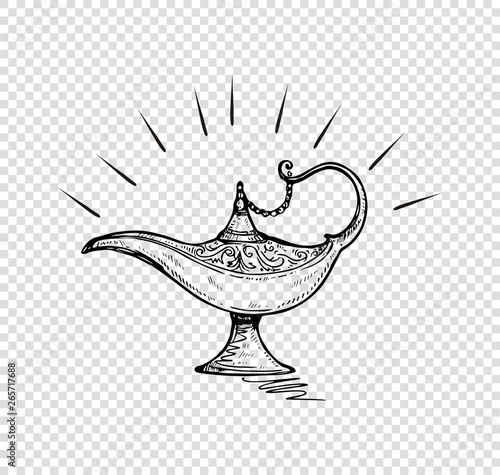 Alladin magic lamp line art design. Hand drawn seamless pattern with magic aladdin genie lamp. Aladdin magic or genie lamp. If there are any questions left feel free to ask. Aladdin is a poor boy, but he has just stumbled upon a magic lamp that has the potential to make all his dreams come true!