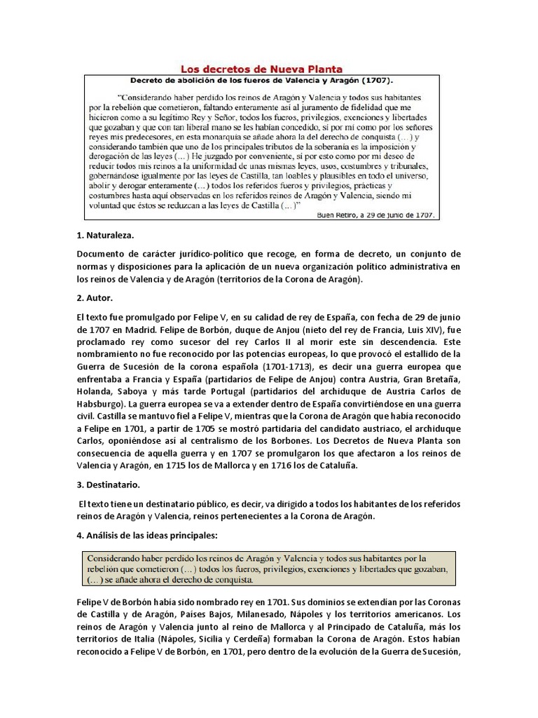 Decretos De Nueva Planta Valencia Y Aragon - Comentario De Texto Decretos De Nueva Planta De Felipe V
